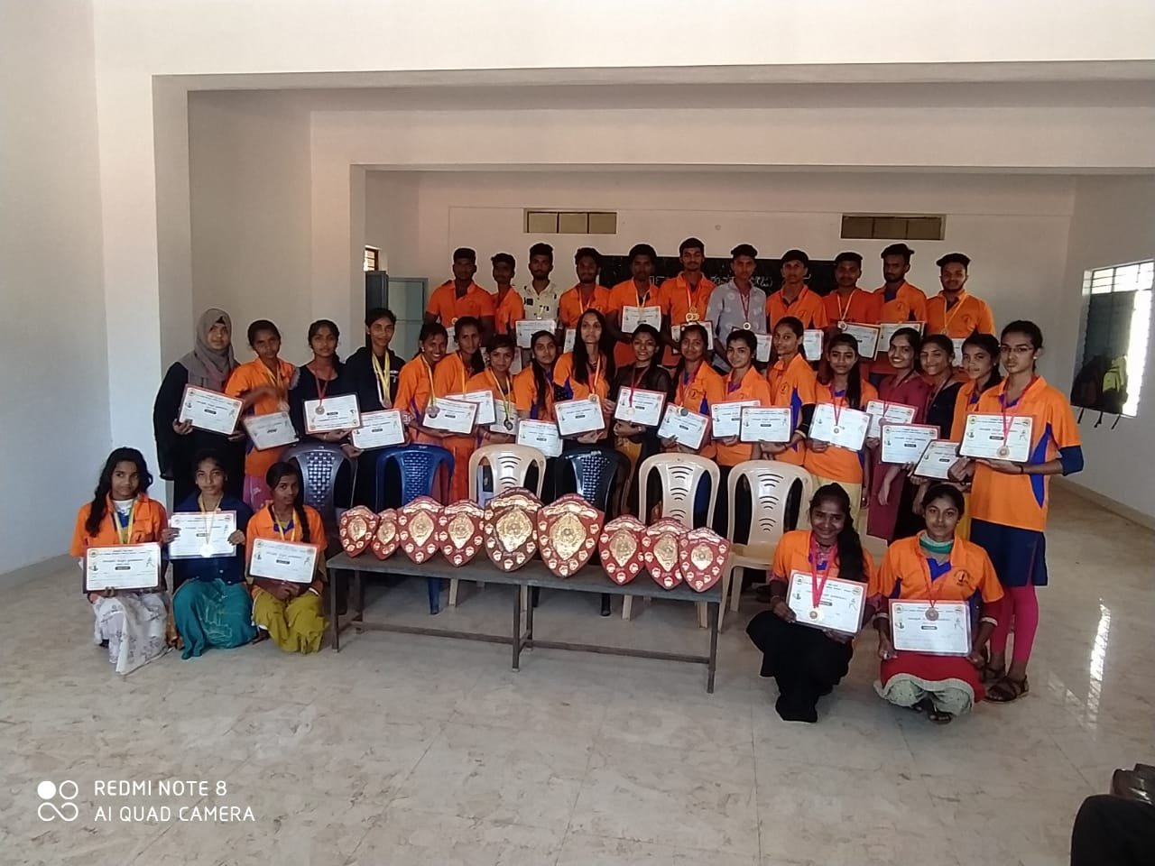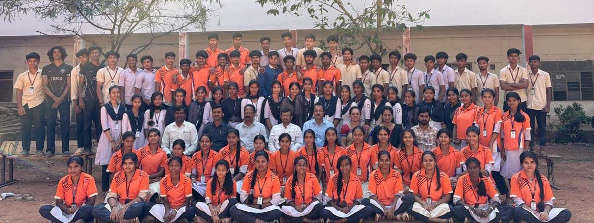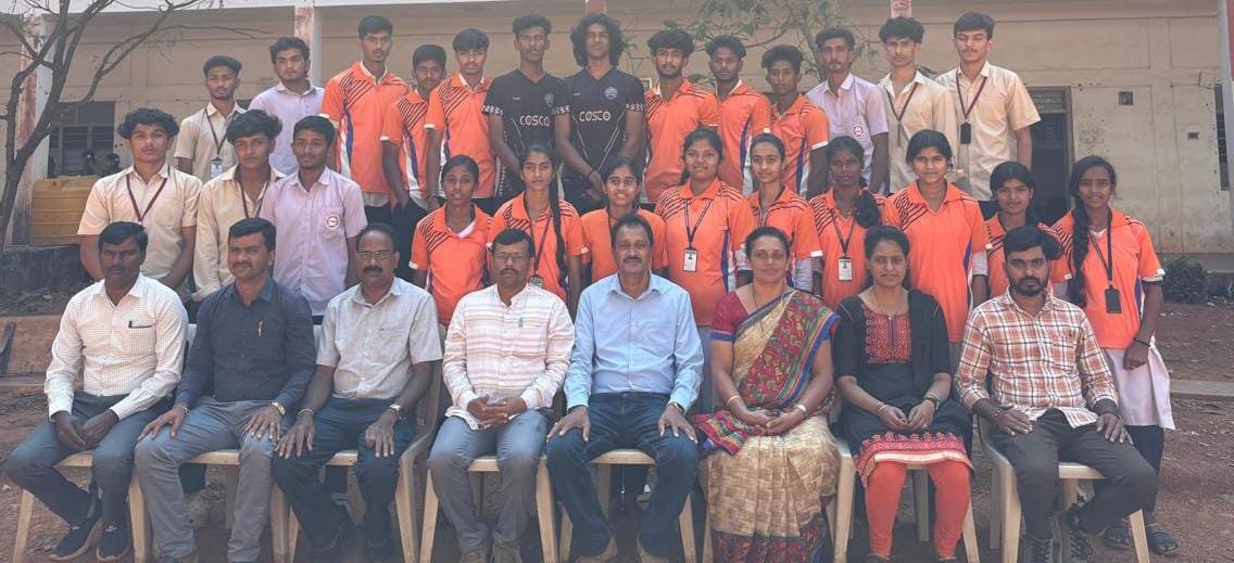 Students selected for the district-level sports meet in the academic year 2025–26 along with the Principal, Sports Secretary, and lecturers.