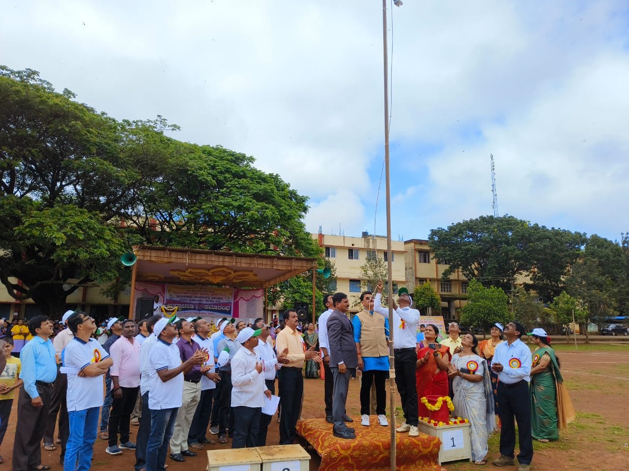 Flag hoisting of the Sagar Taluk–level Government Pre-University Colleges Sports Meet held under the patronage of our college in the academic year 2023–24, inaugurated by the Honorable MLA Mr. Gopalakrishna Beluru.